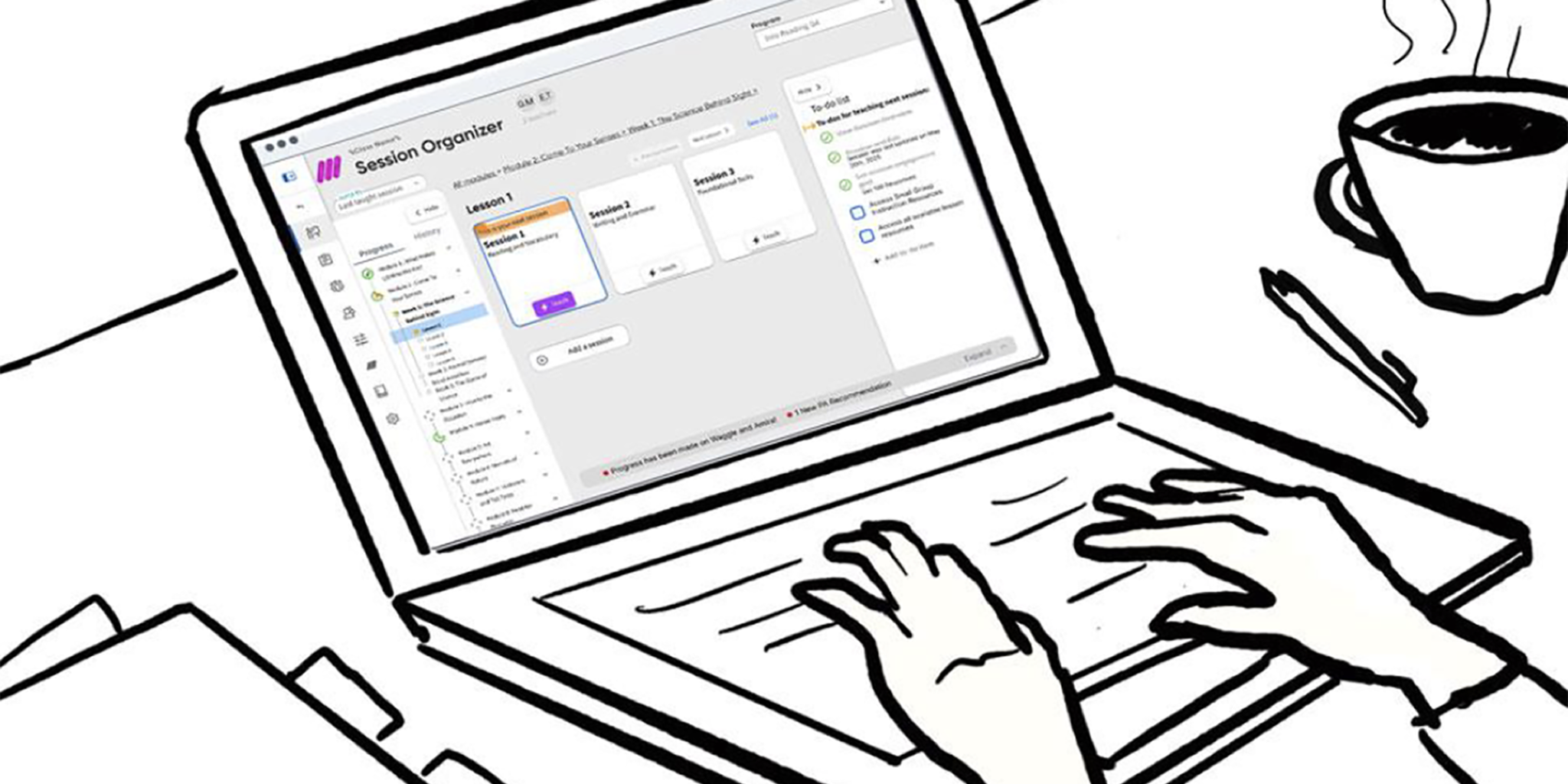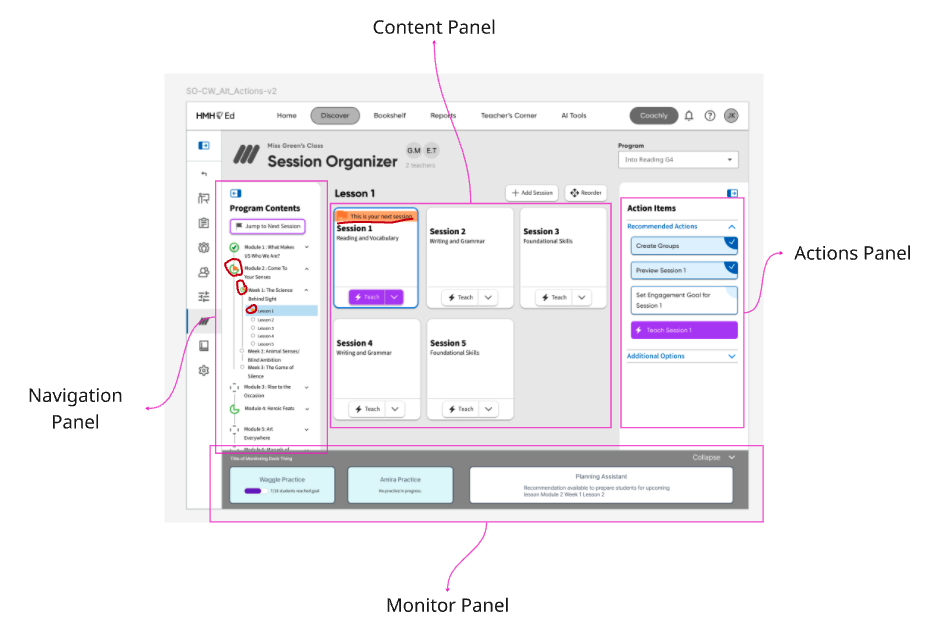 The session organizer is a LMS tool for teachers to help plan their day. It gives them their core lesson material along with helpful resources to put together all they need for a typical classroom session. Unless, that is, they have no idea how to use it. That was the problem we were having with the v1 of the session organizer tool. It was giving teachers too much without clear guidance on how to navigate all the material we were providing them, often leaving the act of organizing to the user rather than doing it for them.