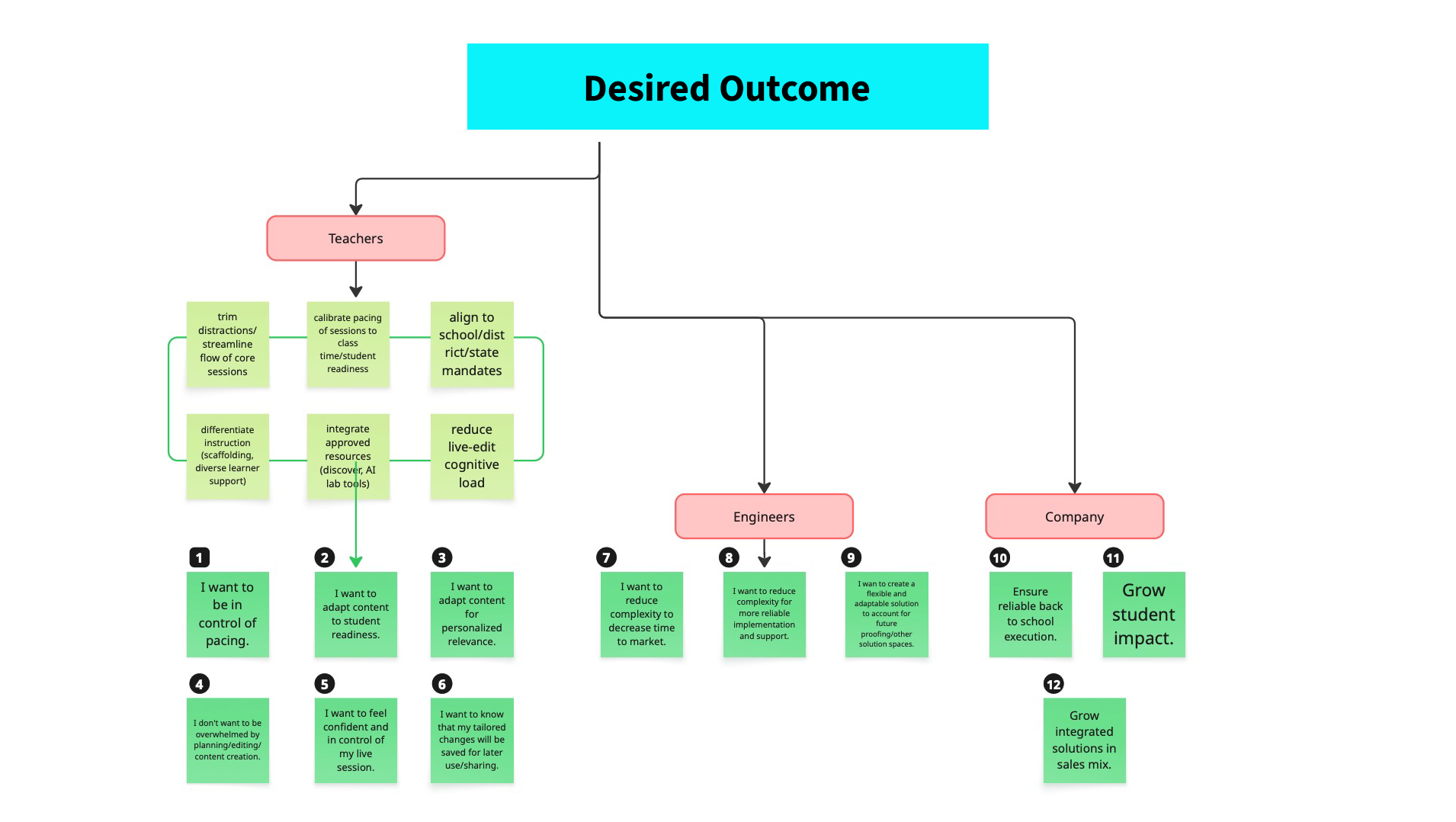 The hierarchy told a clear story. The most wanted feature was also the simplest, to hide what teachers didn't need, whereas the least requested category, granular editing, aligned closely to what we had been building. We were delivering complexity where teachers were asking for control.