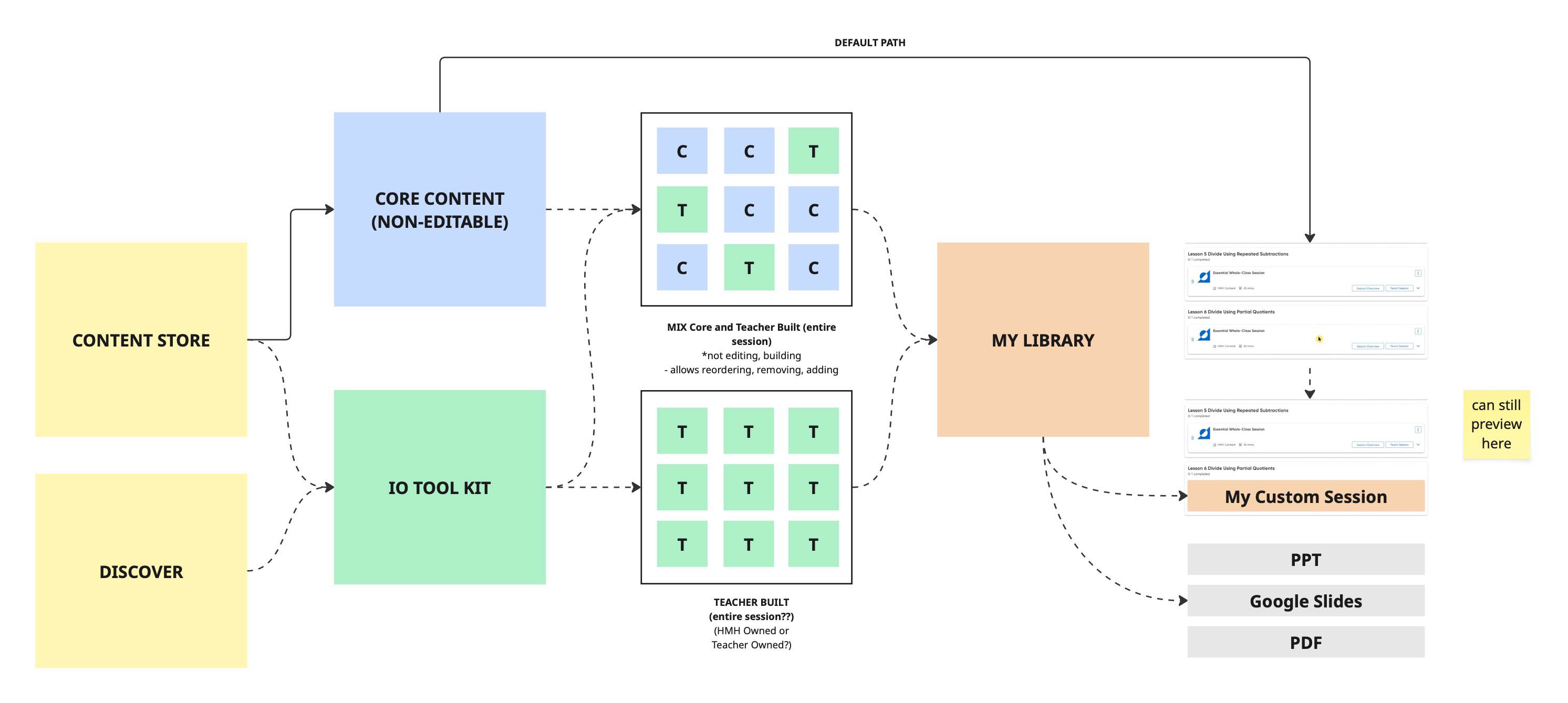 While we were working through the editing problem, a separate team was building something called the Content Store: a centralized repository of all HMH-produced content that learning experience designers could query, with AI assistance, to build lesson content dynamically based on subject matter, standards, and instructional needs.